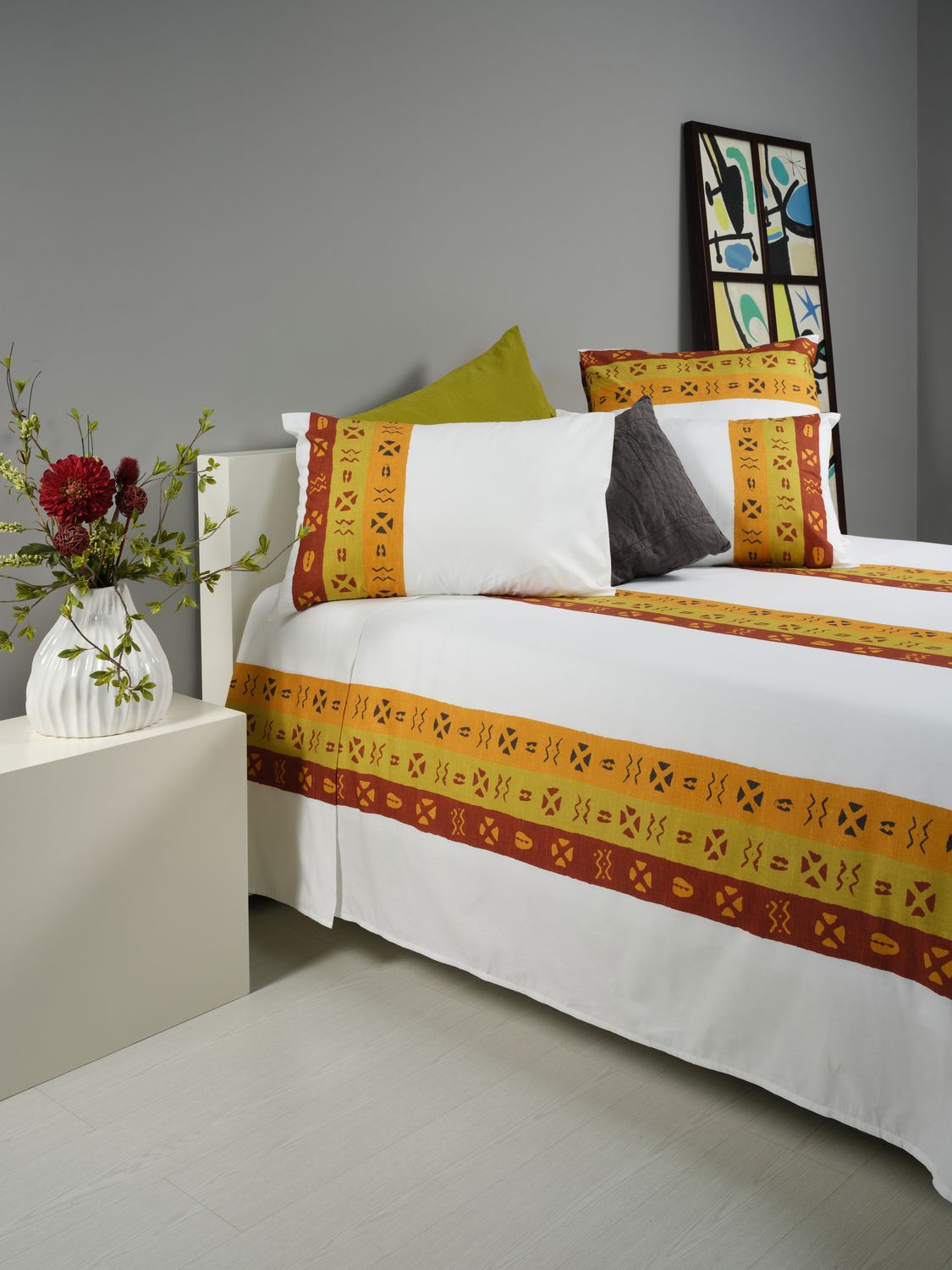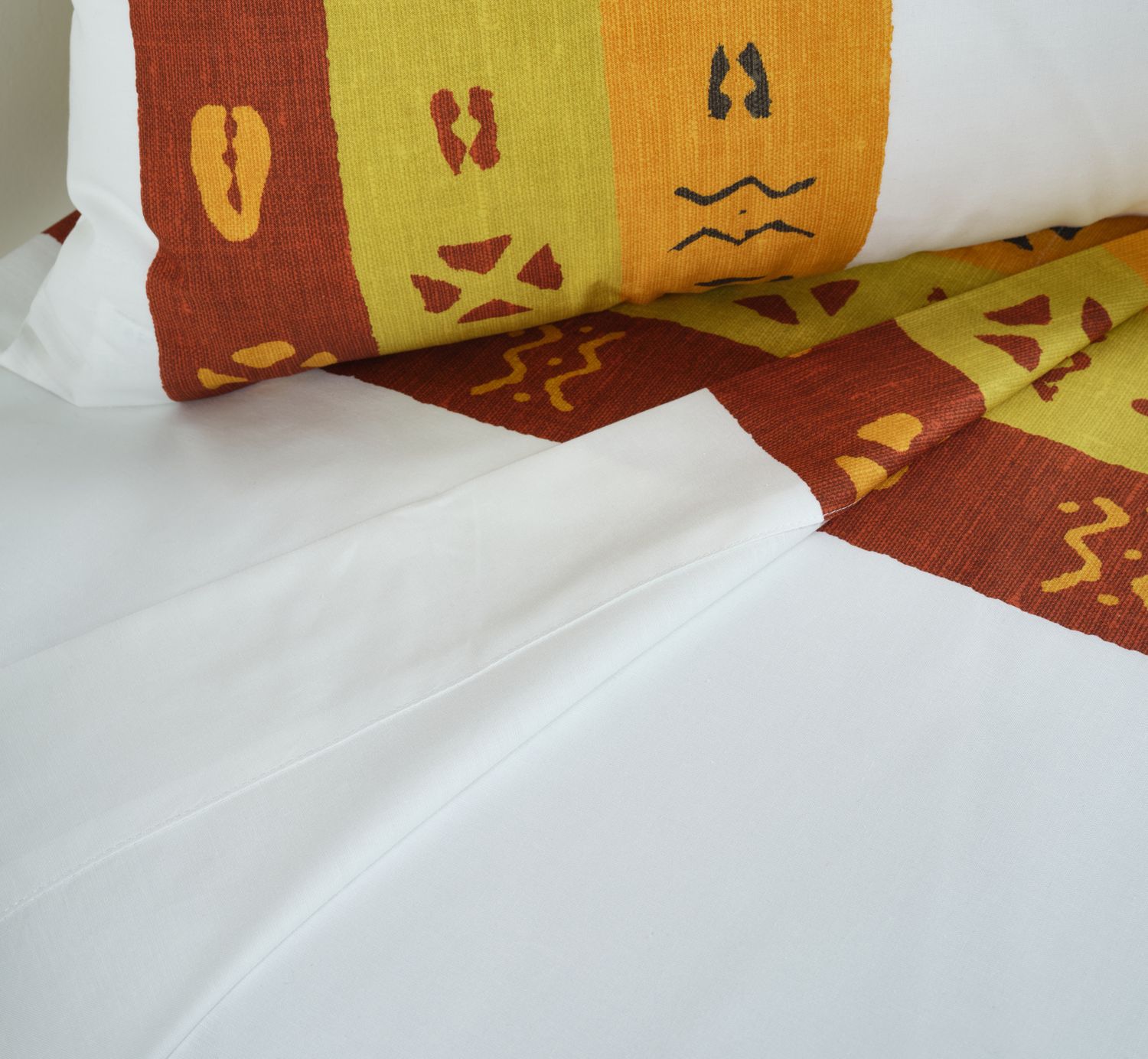 Drap plat avec un parement de 40 cm au dos: sur le lit, tous les motifs sont apparents. L’usage d’un couvre-lit n’est plus nécessaire.