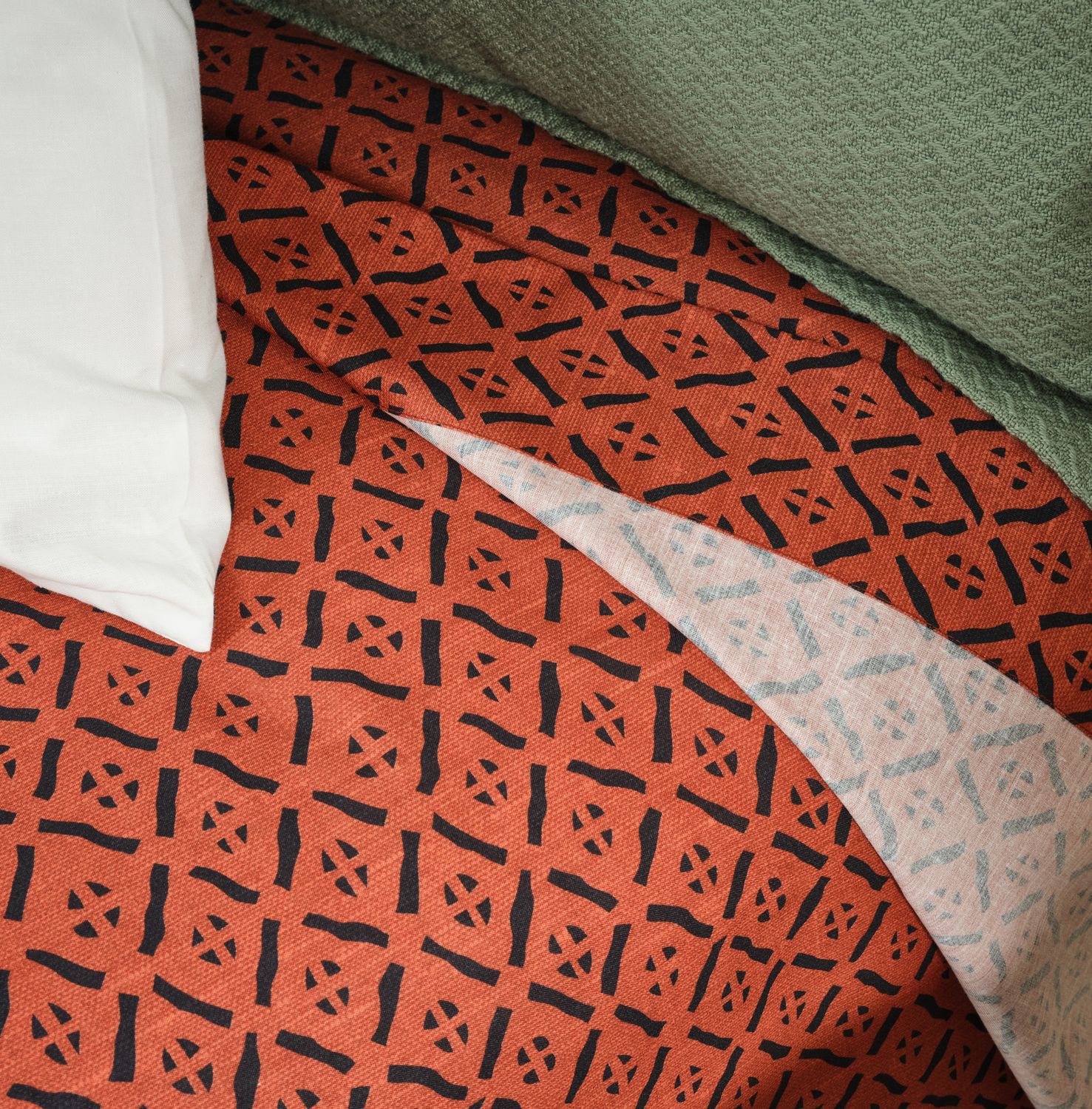 Drap plat avec un parement de 40 cm au dos: sur le lit, tous les motifs sont apparents. L’usage d’un couvre-lit n’est plus nécessaire.