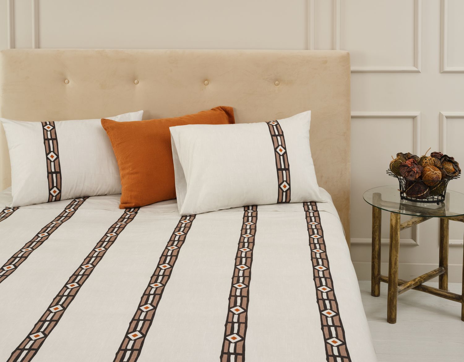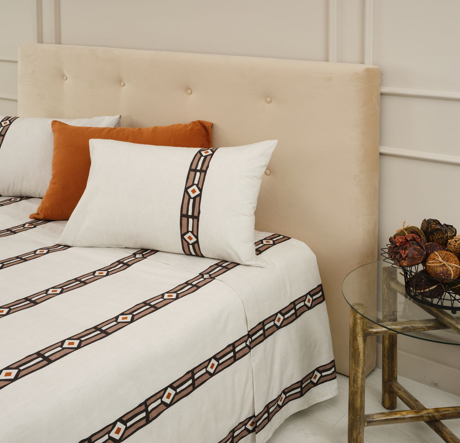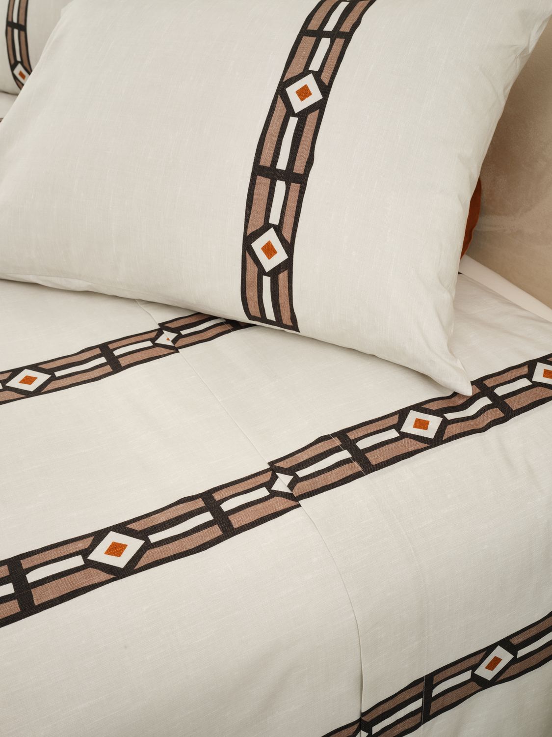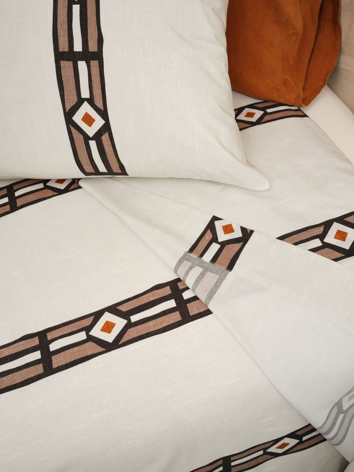Drap plat avec un parement de 40 cm au dos: sur le lit, tous les motifs sont apparents. L’usage d’un couvre-lit n’est plus nécessaire.