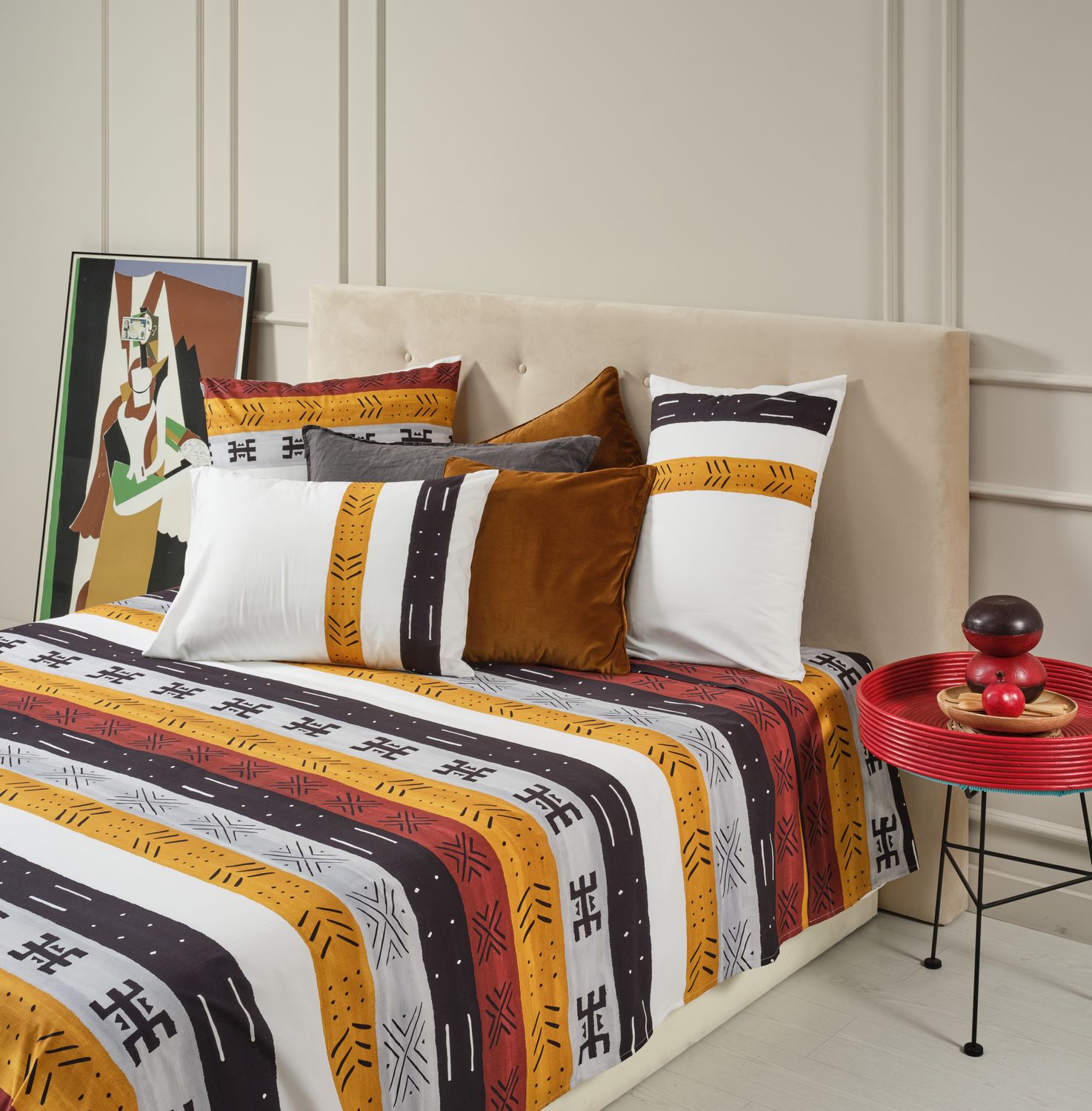 Mansa qui veut dire “roi des rois” en Mandingue, vous transporte instantanément dans un monde de splendeur et de majesté. Inspirée par l’illustre Mansa Moussa, légendaire roi de l’empire du Mali et réputé homme le plus riche de tous les temps. Chaque pièce célèbre son héritage à travers un style somptueux, une harmonie parfaite entre la douceur et le confort à travers des motifs graphiques uniques et saisissants.