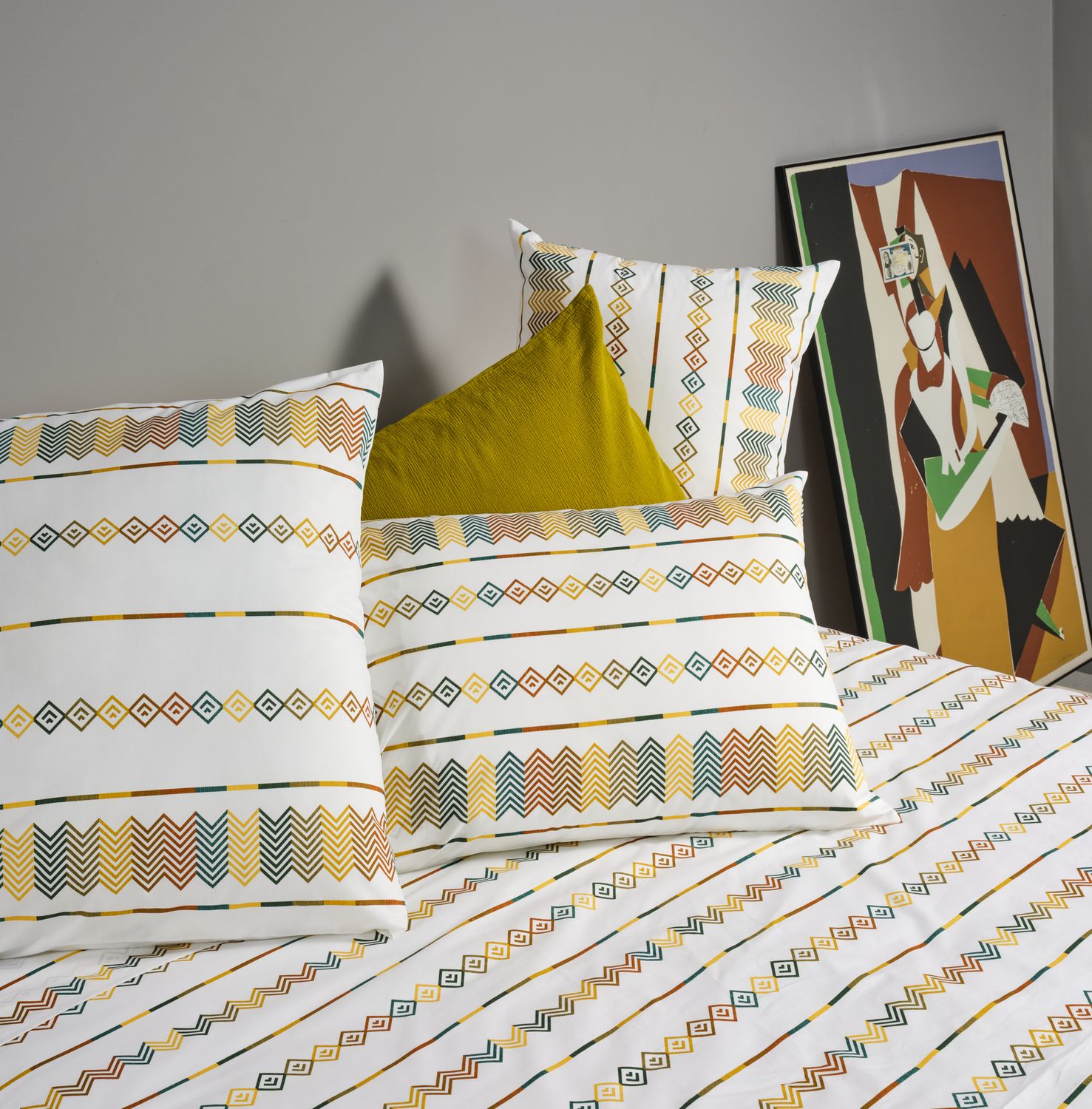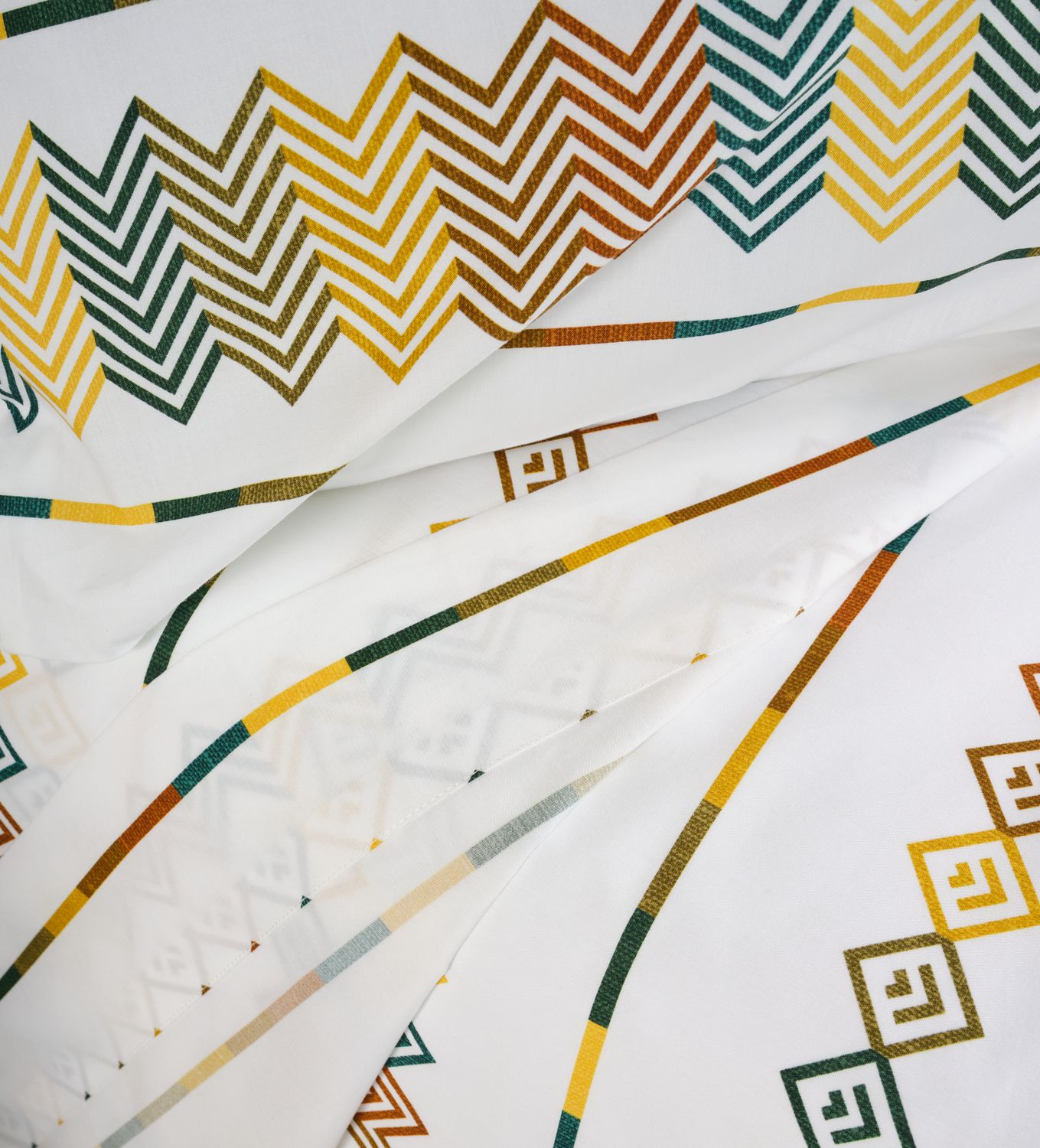 Drap plat avec un parement de 40 cm au dos: sur le lit, tous les motifs sont apparent. L’usage d’un couvre-lit n’est plus nécessaire.