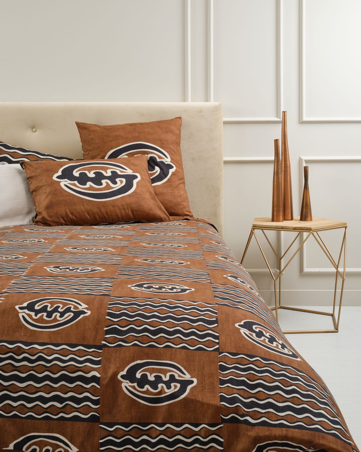 Découvrez le raffinement de la parure Terre, un hymne à la beauté de la nature. La teinte inspirée du bogolan malien, évoque la beauté brute et organique de la terre. Grâce à notre technologie d’impression digitale, nous avons capturé avec précision la teinte authentique du bogolan traditionnel. Une couleur qui révèle la splendeurde la terre, et qui rend hommage aux artisans maliens ainsi qu’à leur méthode de teinture respectueuse de l’environnement, utilisant de la boue et des matières premières naturelles. En intégrant la collection Terre dans votre chambre, vous y insufflerez une énergie positive et apaisante où le sommeil devient une célébration de la nature.