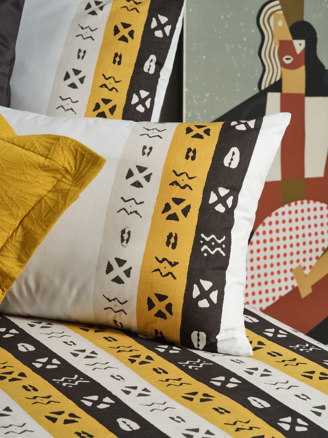 Le design du bogolan malien, repris tout en sobriété, est conçu pour s’adapter aux goûts des amateurs de minimalisme chic et de raffinement contemporain. Laissez-vous séduire par ce mariage unique entre héritage africain et design contemporain, pour une chambre à coucher qui raconte une histoire et fait rêver.